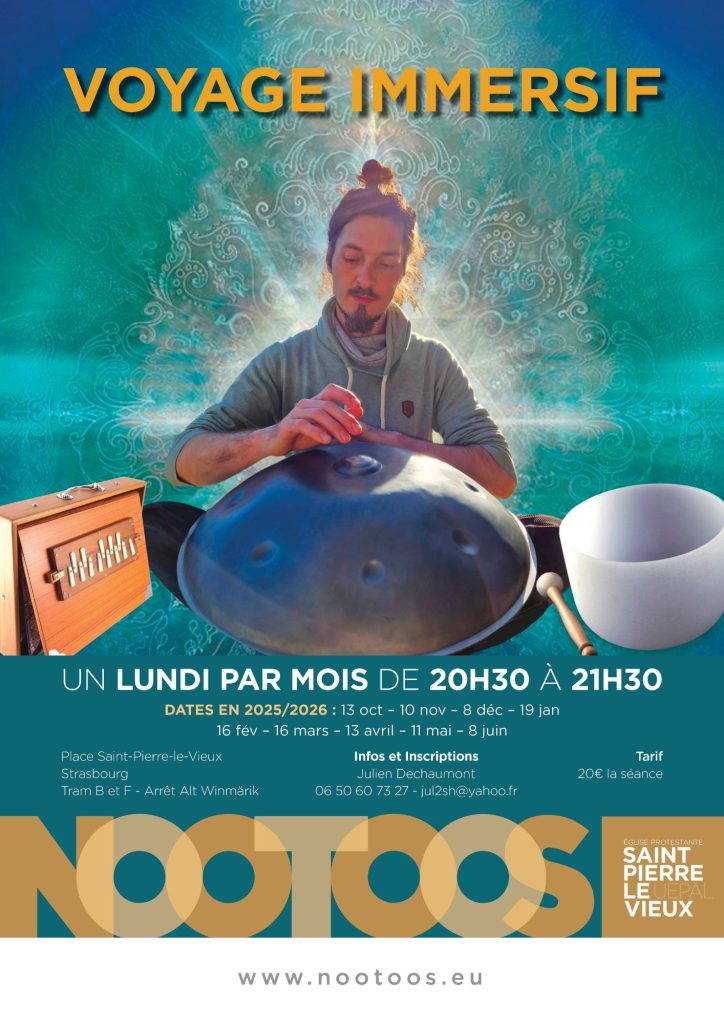 Voici les deux ateliers mensuels qui ont lieu à Nootoos, en l’église Saint-Pierre-le-vieux de Strasbourg, durant l’année 2025 / 2026.